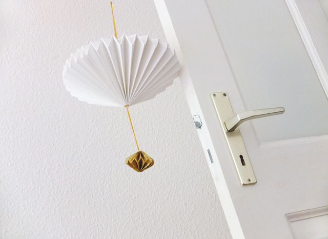 Biała dekoracja, która ciągle wisi na drzwiach, zamiast przy oknie.